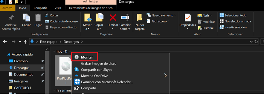 Tras hacer clic en montar, se agregará un “CD” virtual en el explorador de Windows.
